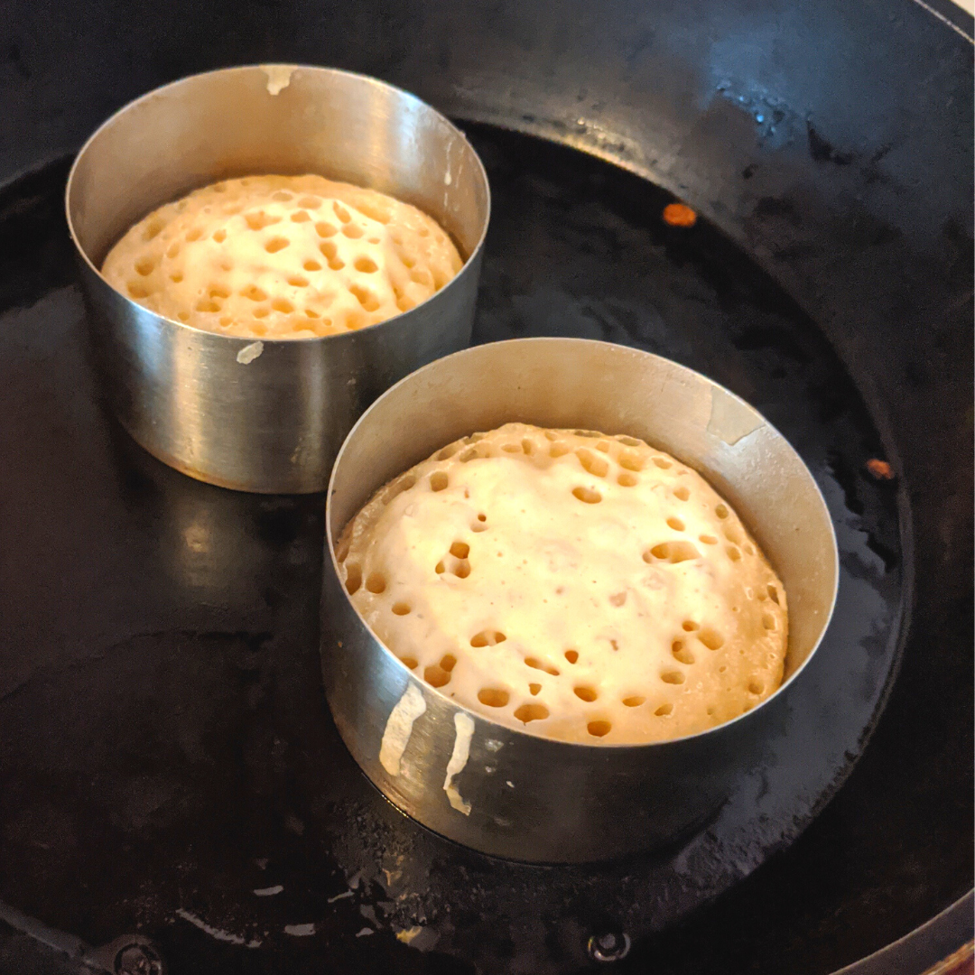Recipe adapted from here - https://www.recipetineats.com/crumpet-recipe/#recipe